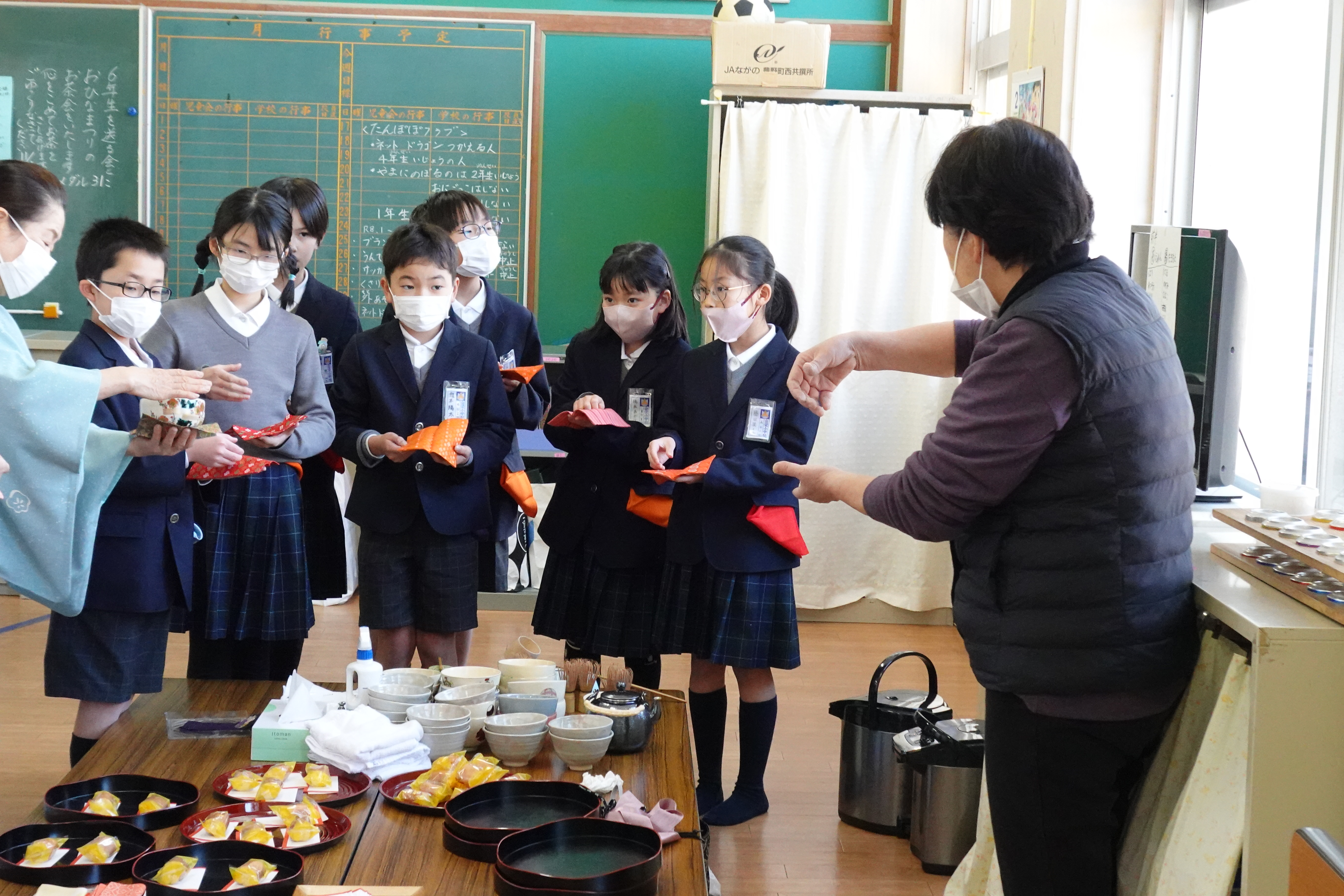 今日でクラブが最終となります。茶道クラブは先生たちにお茶をたててくれました。